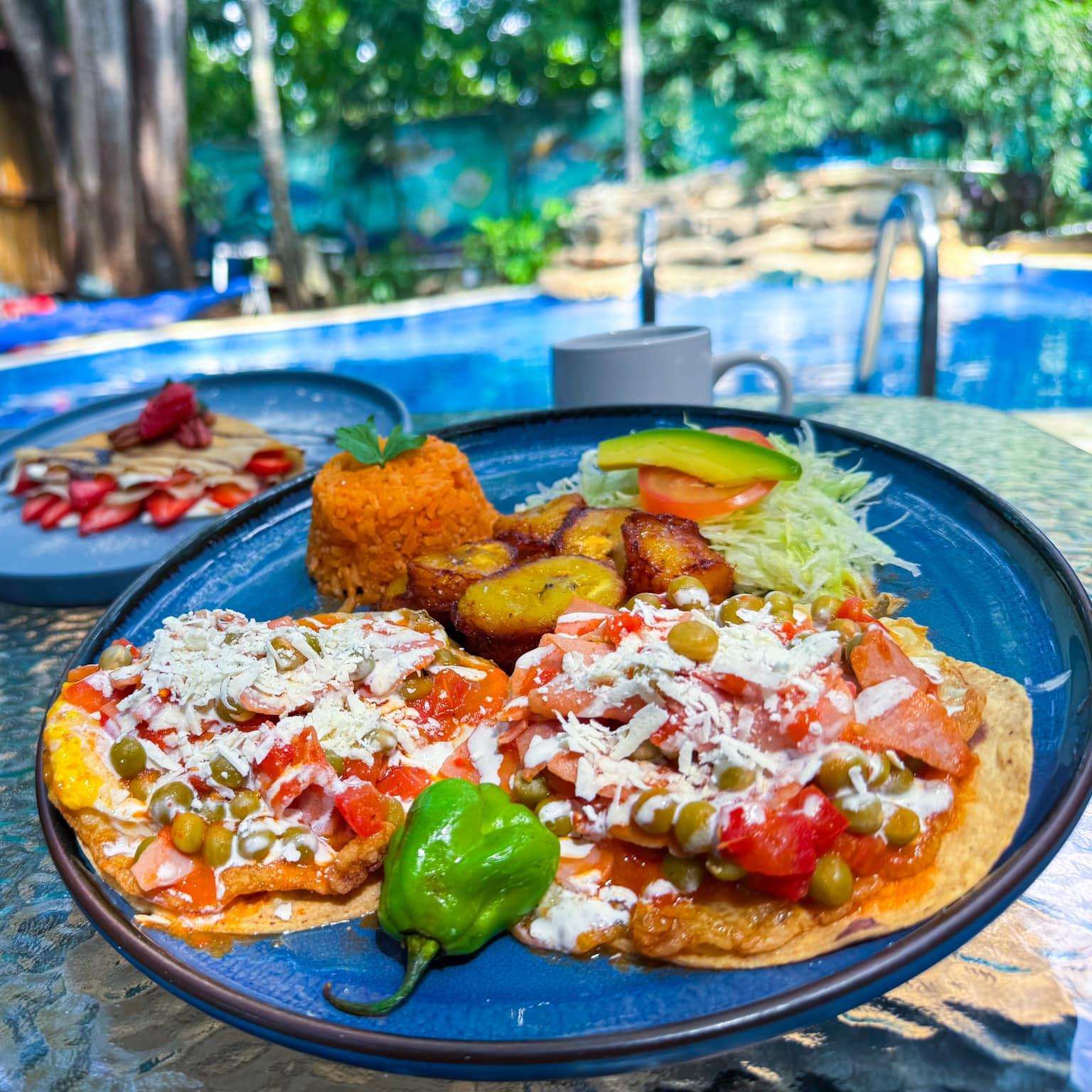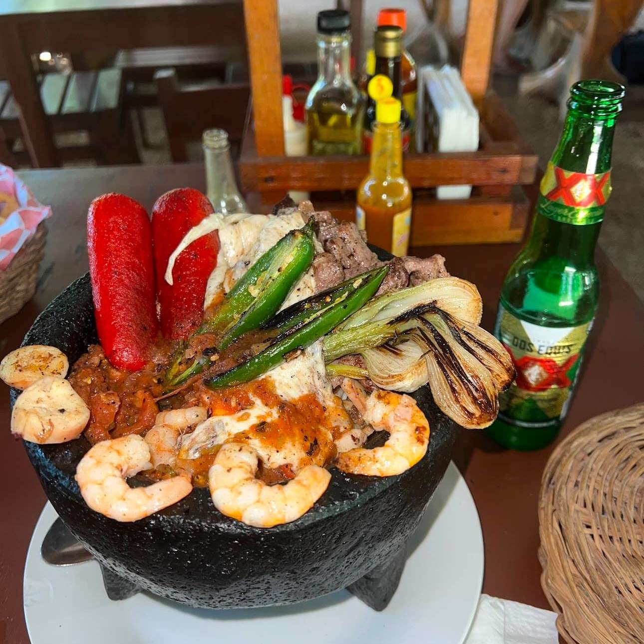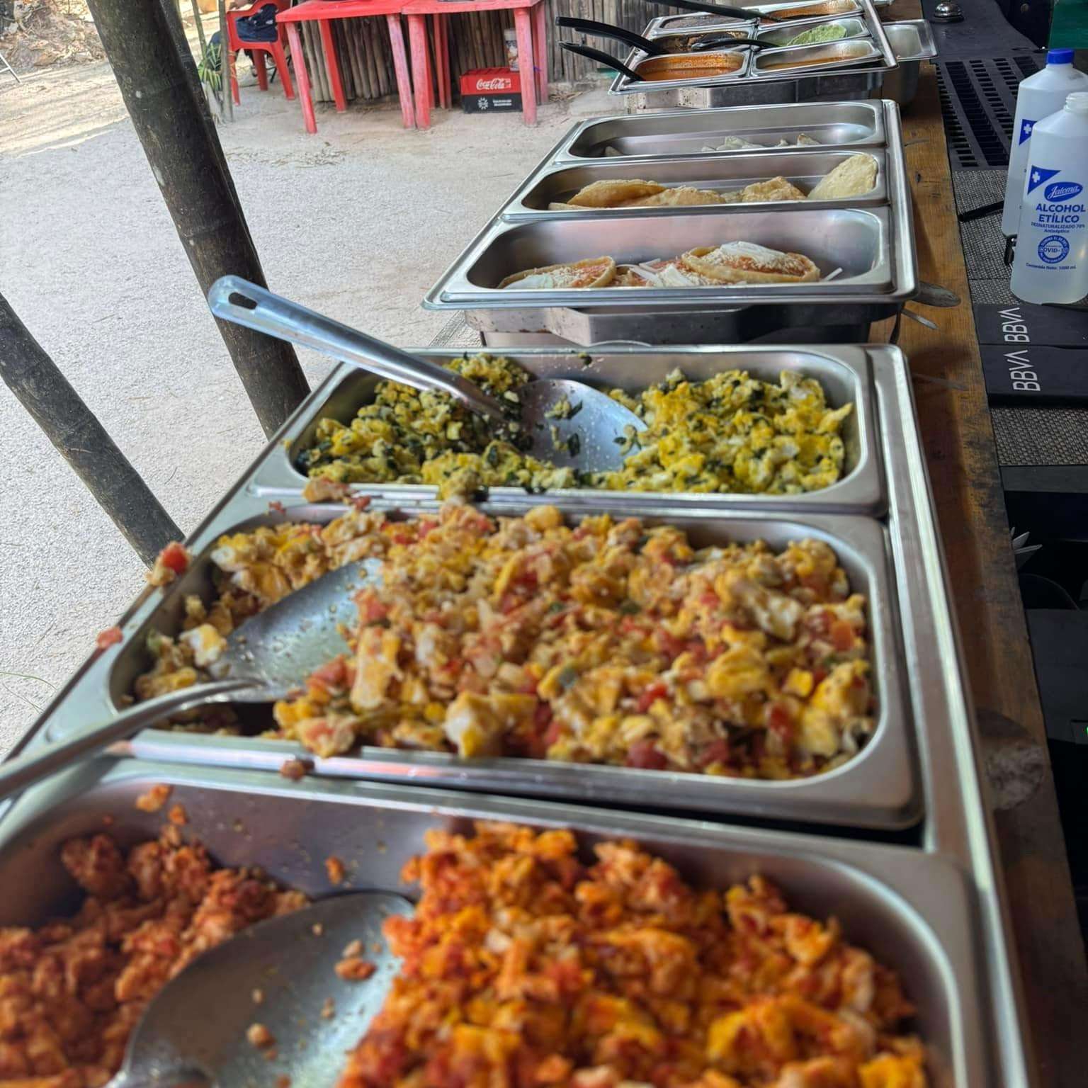 Disfruta de desayunos, almuerzos y cenas con deliciosos platillos como Molcajete Mar & Tierra, ceviches frescos, cócteles, caldo de camarón, huevos motuleños, postres caseros y mucho más. Todo preparado al momento con ingredientes frescos y porciones que garantizan satisfacción en cada bocado.